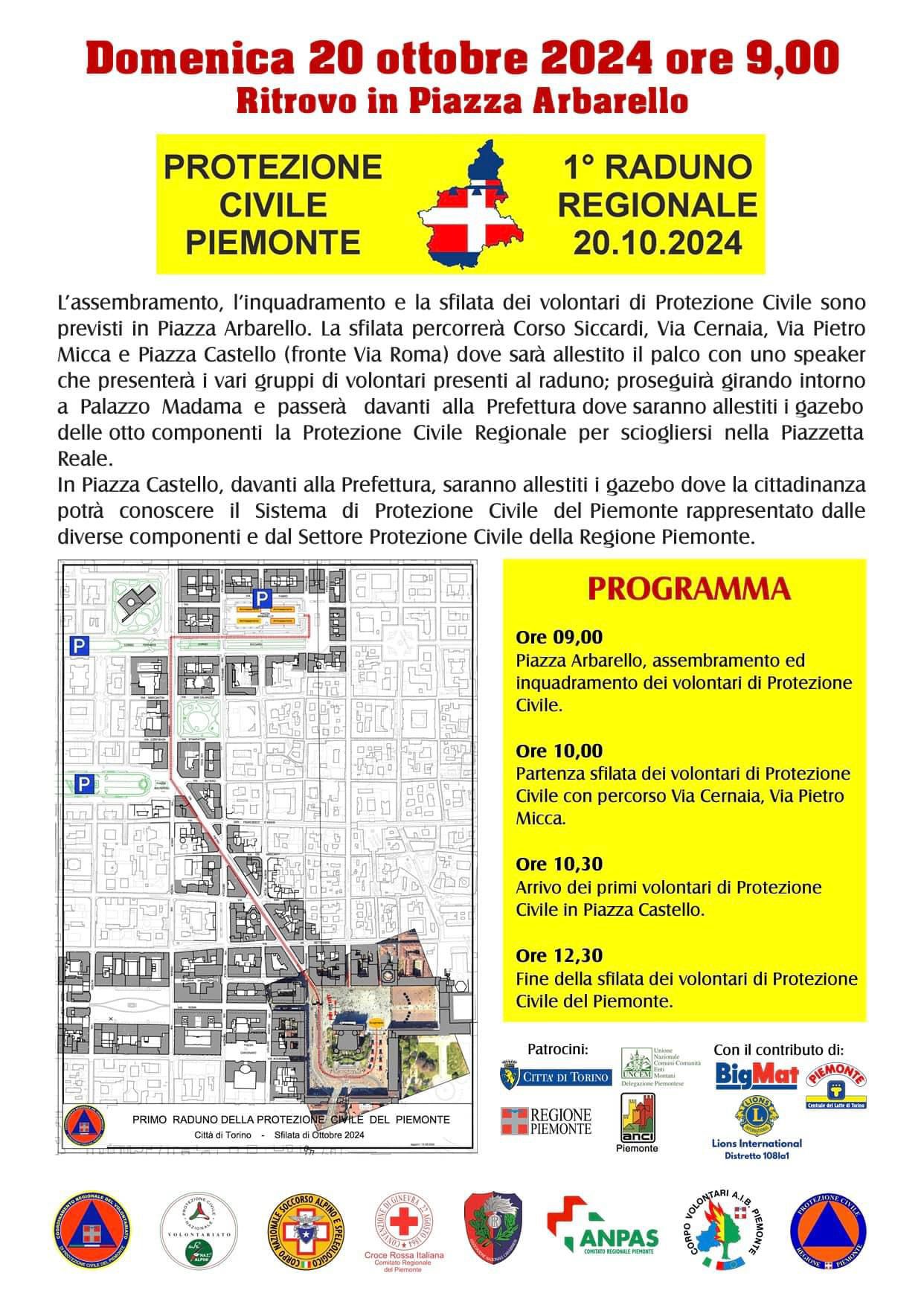 TORINO Domenica 20 ottobre 1° Raduno Regionale della “PROTEZIONE CIVILE PIEMONTE”
