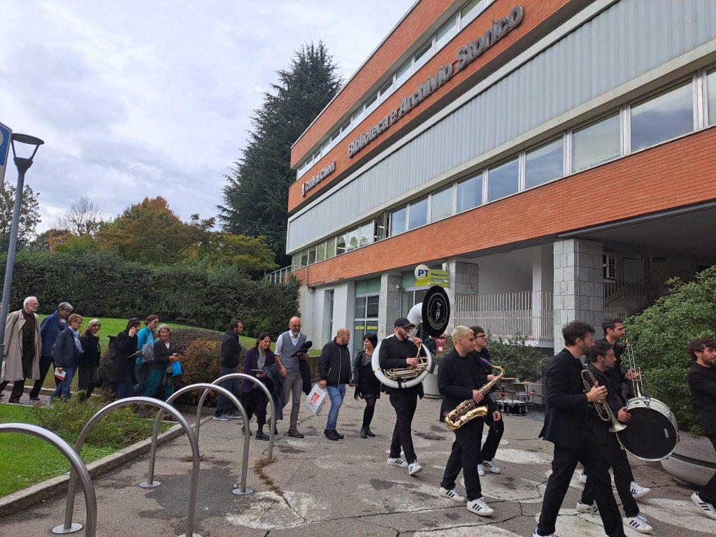 Sabato a Chieri è stata festa per la Biblioteca Civica Francone, che ha celebrato i 20 anni dal suo trasloco alla attuale sede nell’ex Tabasso. Al mattino, intitolazione della Sezione Storia Locale a Maria Francesca Garnero, direttrice per oltre 30 anni, con una cerimonia in sala conferenze. Nel pomeriggio, l’evento “Non perdiamo il filo”, lettura itinerante di un racconto dello scrittore Alessandro Perissinotto attraverso tappe in Piazza Umberto, Piazza Duomo, parco PATCH ed epilogo in Biblioteca, con la partecipazione di BandaKadabra.