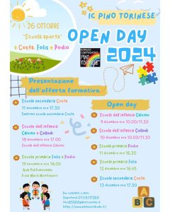 Sabato 26 ottobre “Open Day” dell’Istituto Comprensivo di Pino Torinese