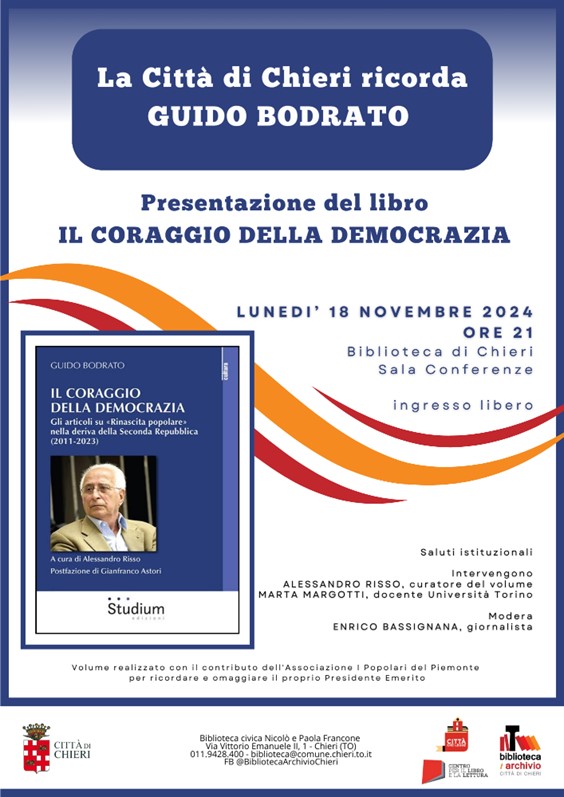 Il Comune di Chieri ha deciso di ricordare Guido Bodrato – certamente uno dei suoi cittadini più illustri – organizzando la presentazione di un libro a lui dedicato.