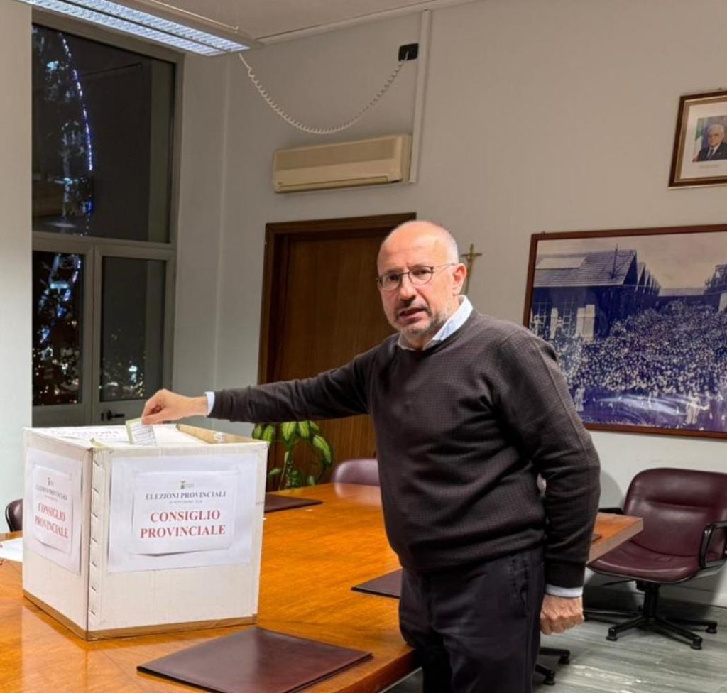 Nella foto: il Presidente della Provincia Maurizio Rasero durante l’operazione di voto per il rinnovo del Consiglio Provinciale