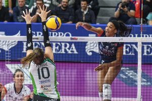 Igor avanti 5-1, le ospiti rientrano con Kraiduba (7-6), Bosio a muro scappa di nuovo (9-6) e Alsmeier spinge le azzurre sul 13-9. Il turno in battuta di Strantzali riapre tutto: Talmassons sorpassa 15-16, Novara torna avanti con il muro di Aleksic (19-18) per conquistare poi il break con Bosio, ancora a muro (21-19). Shcherban impatta (23-23) e Ishikawa spara out il 23-25. Novara riparte 5-2 con l’ace di Tolok, il servizio della Igor fa la differenza (11-4), poi ancora Alsmeier chiude uno scambio infinito in pipe, sul 17-6. Ishikawa fa 20-8 in battuta, Bosio 23-11 e poco dopo è un errore al servizio di Kraiduba a sigillare il 25-12. Si riparte testa a testa: muro di Aleksic (7-6) e Talmassons che sorpassa poco dopo 8-9, per scappare 9-11 con Shcherban che mette a terra una palla vagante. Di nuovo Aleksic per il sorpasso a muro (13-12), Ishikawa concretizza in maniout una gran difesa di Bonifacio (15-12) che poi fa 21-19 e Alsmeier trova il break decisivo chiudendo in diagonale uno scambio infinito (22-19). L’ace della tedesca vale il set point (24-21) e un muro di Tolok segna il sorpasso (2-1). Tolok sbaglia (2-4), Bosio ricuce a muro (4-4) ma due punti in fila di Strantzali restituiscono l’inerzia alle ospiti (4-7) prima della nuova rimonta azzurra con Tolok che in maniout fa 10-10. Novara cede di schianto, Talmassons scappa 10-14, un muro su Ishikawa vale il 13-19 che ipoteca il parziale; le ospiti scappano fino al 15-25 firmato da Strantzali. Igor con Mims in sestetto e subito a segno (1-1) ma Kraiduba trova l’ace dell’1-5 mentre Novara rientra 6-7 con Ishikawa; ospiti +2 al cambio campo, Bonifacio impatta (8-8) e un altro muro di Aleksic vale il sorpasso (9-8) con Novara che mantiene l’inerzia e trova il break dell’11-9. Alsmeier in diagonale conquista il match ball (14-12), Strantzali conquista a propria volta il match point (14-15); Alsmeier annulla (15-15), una parallela di Mims e un muro di Aleksic (18-16) chiudono l’incontro.