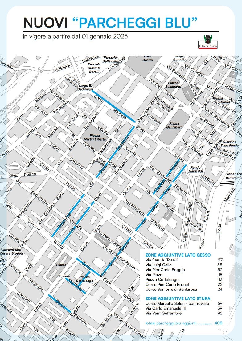 Cuneo. Parcheggi Blu dal 1 gennaio nuove zone e nuove tariffe