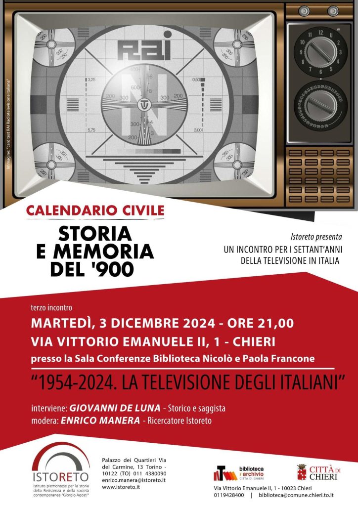 Chieri. Un incontro in Biblioteca con lo storico De Luna per i 70 anni della TV in Italia di Redazione · 2 Dicembre 2024 Visto da: 148