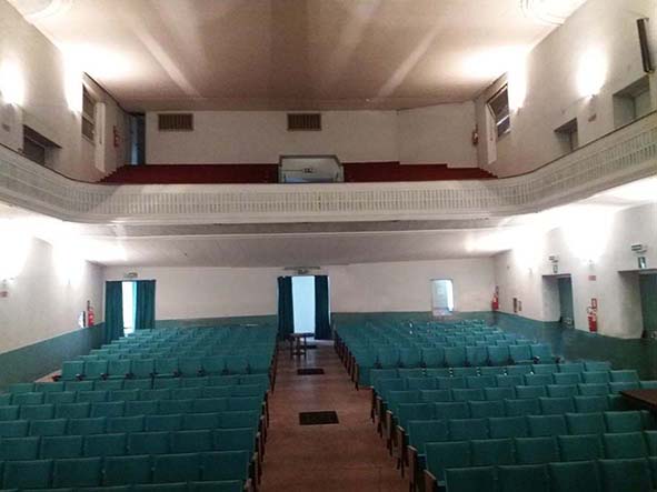 Da “Il Chierese” del 5 gennaio 1952: “Costruito dalla ditta Manolino sotto la direzione dell’ing. Luigi Lautier e su progetto dello stesso, questo salone… presenta una lunghezza di m. 21,50 per una larghezza di m. 14 e altezza m. 10. La platea ha una superficie di mq. 282 e contiene 484 sedie poste in un piano inclinato di 85 cm. verso il palco, davanti al quale si apre un’ampia fossa per l’orchestra in diretta comunicazione con il sotto palco. Alla platea si accede per mezzo di due entrate dall’ingresso principale di via Balbo, mentre le uscite di sicurezza, in numero di 5 e di larghezza non inferiore ai m. 2, sboccano nel cortile comunicante con vicolo Tepice. La galleria con una superficie di 140 mq. e con 200 sedie, si protende con due balconate laterali sopra la platea per m. 7. Ha una altezza dal piano della platea al suo intradosso di m. 4,20 ed ha come sfogo tre porte che per mezzo della scala esterna si aprono nel cortile. Si accede alla galleria per mezzo di una scala che dall’entrata conduce a un piccolo ‘foyer’ con bar servizi igienici ecc. e quindi nella galleria stessa. Il palco, costruito secondo le più moderne esigenze sceniche, misura 100 mq. e consente anche la rappresentazione lirica. Il suo boccascena è di m. 7 x 5,20. Tutto l’insieme dà garanzia di solidità anche per il fatto che ossatura e tetto sono in cemento armato. La ditta Graglia di Torino ha provveduto ad ingentilire la costruzione con pregevoli stucchi; mentre la ditta Mazza Antonio provvedeva per impianti moderni di elettricità. Anche il problema dell’acustica è stato preso in considerazione e risolto in maniera del tutto soddisfacente. Cosi pure, una moderna attrezzatura della ditta Turbiglio e Gariglio provvede al ricambio ed al riscaldamento del locale. Speriamo che ben presto questo teatro incominci una attività e che sia alla sua altezza; nel contempo ci congratuliamo con il progettista ed i costruttori ed in particolare con il rev. Canonico don Lucco Castello che ha fatto sì che Chieri avesse finalmente un teatro attrezzato”.