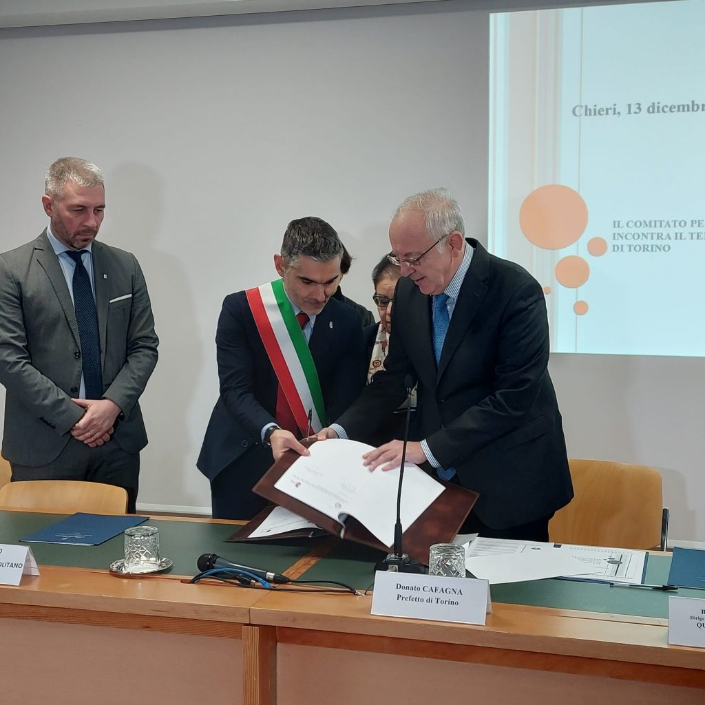 Il Prefetto Donato Cafagna ed il Sindaco di Chieri Alessandro Sicchiero hanno sottoscritto il Protocollo di Intesa sul “Controllo di Vicinato”, finalizzato a stimolare la partecipazione attiva della cittadinanza di Chieri sui temi della sicurezza urbana, strutturando un canale di ascolto diretto e semplificato verso il comune, la polizia locale e le forze dell’ordine.