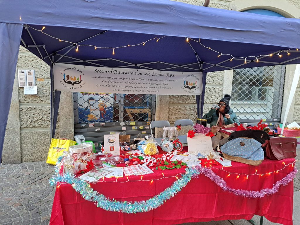 Festa natalizia per le associazioni chieresi, che hanno partecipato in massa con i loro banchetti al mercatino in Via Vittorio organizzato da Incontrinsieme.