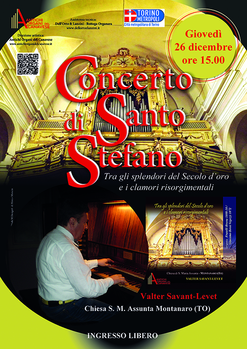 Il maestro Valter Savant-Levet suonerà sull’organo storico, che risale al XIX secolo, una selezione di musiche dal Seicento all’Ottocento inoltrato. I brani sono tratti dall’ultimo volume della collana organistica Antichi Organi del Canavese, dal titolo “Tra gli splendori del Secolo d’oro e i clamori risorgimentali”. Il 47° volume della collana Antichi Organi del Canavese è stato inciso nell’autunno 2024, dopo i recenti interventi di restauro e ripulitura dell’organo in Santa Maria Assunta.