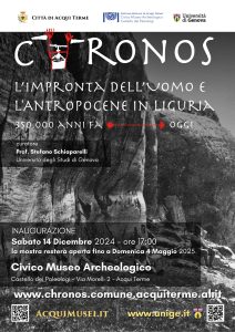 Sabato 14 Dicembre 2024, con inaugurazione ha preso avvio presso il Civico Museo Archeologico del Castello dei Paleologi di Acqui Terme la mostra “CHRONOS. L’impronta dell’uomo e l’Antropocene in Liguria”, organizzata dal Sistema Museale cittadino con l’Università degli Studi di Genova nell’ambito del protocollo di collaborazione tra Comune di Acqui Terme e Università sottoscritto lo scorso anno. L’esposizione, che rimarrà presso il Museo fino a domenica 4 maggio 2025, si snoda lungo l’esposizione museale permanente, dialogando con essa ed approfondendone il percorso cronologico, e presso le sale inferiori dedicate alle esposizioni temporanee; si rivolge a studenti, famiglie, comunità del territorio ed appassionati di storia, archeologia, ecologia, storia dell’ambiente e della tecnologia umana, e mira a coinvolgere le scuole di ogni ordine e grado in un viaggio alla scoperta delle modificazioni del nostro territorio.La mostra, ideata e curata da Stefano Schiaparelli – professore associato di Zoologia e Biologia Marina presso l’Università degli Studi di Genova e Delegato del Rettore per la valorizzazione degli archivi e dei musei dell’Ateneo – ripercorre l’impatto e l’impronta della presenza umana sul territorio e sull’ambiente naturale che lo circonda. Concentrandosi sul territorio ligure (inteso nel senso più ampio) il percorso attraversa la storia della presenza e del popolamento umano e del suo sfruttamento delle risorse naturali, dal più remoto Paleolitico per arrivare fino all’età contemporanea con l’invasione dell’ambiente da parte dei materiali artificiali prodotti dall’uomo e la diffusione globale di specie e prodotti alieni.La Liguria è stata frequentata da varie specie di ominidi (Homo heidelbergensis, H. neanderthalensis e, infine, H. sapiens) a partire da almeno 350.000 anni fa. Reperti rinvenuti in aree limitrofe, poco oltre il confine con la Francia, attestano una frequentazione dell’arco ligure provenzale che risale anche a 1.200.000 anni fa. Il clima mite, la presenza di varie risorse alimentari e di materiali utili ha da sempre favorito la presenza dell’uomo in questa regione. L’impatto sul territorio è stato inizialmente irrilevante, data la bassa densità delle popolazioni, ma con la “rivoluzione neolitica”, che segna l’abbandono della condizione di cacciatori-raccoglitori, prettamente nomadici, in favore di attività agro-pastorali stanziali, il paesaggio ligure ha iniziato a modificarsi, in modo irreversibile, fino ai giorni nostri.Lo sfruttamento del territorio è progressivamente aumentato di intensità di pari passo con l’acquisizione di nuove conoscenze pratiche, nel passato tramandate oralmente o, in tempi recentissimi, con il progressivo avanzamento delle conoscenze scientifiche che hanno permesso di sfruttare in modo ancora più raffinato le risorse disponibili. La mostra intende ripercorrere, lungo il filo temporale della storia, il susseguirsi delle principali “rivoluzioni”, da quella neolitica fino al boom economico post-bellico che ha coinciso con l’epoca che ora conosciamo come Antropocene. Alcuni personaggi che hanno fatto la storia dell’esplorazione di questo territorio., “riportati in vita” dall’intelligenza artificiale (i.e. Prof. Arturo Issell e Clarence Bicknell), narreranno in prima persona, le scoperte e le ricerche a cui hanno dedicato la loro vita di studiosi. Si potranno ripercorrere, grazie alla disponibilità di reperti e fonti di archivio dell’Università degli Studi di Genova, le principali tappe attraverso le quali, a partire da semplici strumenti di pietra, l’uomo ha potuto trasformare così profondamente il territorio ed il mare della Liguria.La mostra offre possibilità di vedere oggetti fisici e strumenti litici preistorici e protostorici, ricostruiti con immanicature e prese in modo da permettere una perfetta comprensione degli strumenti tecnologici di 5000 anni fa (punte di freccia, riproduzioni di asce in pietra verde per abbattere alberi, falcetti e accette); la moderna tecnologia permetterà di visionare, e toccare, riproduzioni tridimensionali di reperti e di una incisione rupestre della Valle delle Meraviglie del Monte Bego. Si potranno osservare esempi di rocce sfruttate in Liguria dalla preistoria (e.g. diaspri) fino ai tempi più recenti (e.g. manganese) e i materiali dell’Antropocene (cemento, plastica, vetro, metalli vari) che condizionano negativamente gli ambienti marini e terrestri della Liguria, e conoscere le nuove specie animali invasive che vengono da lontano (granchio blu, punteruolo della palma).In linea con la digitalizzazione dei beni culturali, la mostra offre quindi un’esperienza innovativa che approfondisce le interrelazioni tra l’umanità e il territorio ligure, evidenziando come le azioni umane abbiano influenzato il paesaggio nel corso dei secoli. Un aspetto distintivo di quest’iniziativa è l’uso di codici QR, che consentono al pubblico di visualizzare i modelli 3D del Sistema Museale di Ateneo dell’Università degli Studi di Genova. In aggiunta, l’impiego dell’intelligenza artificiale per “riportare in vita” figure storiche come Arturo Issel e Clarence Bicknell, attraverso avatar digitali, coinvolgerà i visitatori rendendo palpabile il fascino del lavoro di questi esploratori e il loro impatto sulla comprensione della Liguria e delle sue trasformazioni nel tempo. Sono inoltre previste, in giornate specifiche, attività laboratoriali di rilievo e modellazione 3D, per raccontare la valorizzazione dei beni culturali attraverso la digitalizzazione e condivisione degli stessi, e momenti esperienziali con utilizzo di visori 3D.
