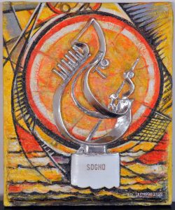Mercoledì 11 dicembre a Borgo Venezia, presso la Gondola-Sogno, il critico d’arte Giorgio Gregorio Grasso ha presentato il nuovo catalogo “Lo stato dell’arte al tempo della 60esima Biennale di Venezia”, edito dall’istituto nazionale di cultura. Tra le 605 opere selezionate, l’opera futurista Bi Tridimensionale dell’artista chierese Leonardo Guerrino Zago “SOGNO “(polvere minerale su yuta rifinita in argento silver ), “LA SPOSA” surrealismo acrilico di ENRICA DEL NERI, ISTANTANEA DI UN TRENO PASSATO MAI PRESO Tecnica mista su carta , e MUTAMENTO DELL’ANIMA acrilico su tavola di DANIELE e TIZIANA ZAGO. Tra i presenti anche il presidente dell’ associazione Veneti del Chierese Claudio Campagnolo che ha esposto al critico le motivazioni che hanno portato alla scelta del “SOGNO”.