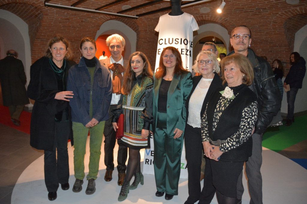 La mostra comprende 14 abiti realizzati impiegando il tessuto bandera, di antica tradizione torinese, prodotto in questo caso dalla Tessitura Pertile di Chieri. Il progetto ha visto coinvolti attivamente 40 studenti dell’Accademia, in particolare gli allievi del corso di Progettazione Artistica per l’Impresa, indirizzo Fashion Design nella realizzazione di una capsule collection di abiti a trapezio, dalla caratteristica forma ad A, con inserti tinti con coloranti naturali nei sette colori dell’arcobaleno, usando tecniche sperimentate dagli studenti nel corso di un workshop al Museo del Tessile di Chieri. Si tratta di un progetto interdisciplinare e intergenerazionale che coniuga creatività e impegno negli obiettivi di sviluppo sostenibile dell’Agenda 2030. Nelle foto di Luciano Berruto: momenti dell’inaugurazione torinese