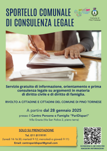 Sarà operativo dal 28 gennaio 2025 a Villa Grazia, presso il Centro Persone e Famiglie “PariDispari”, lo Sportello comunale di consulenza legale gratuita rivolto alle cittadine e ai cittadini pinesi.