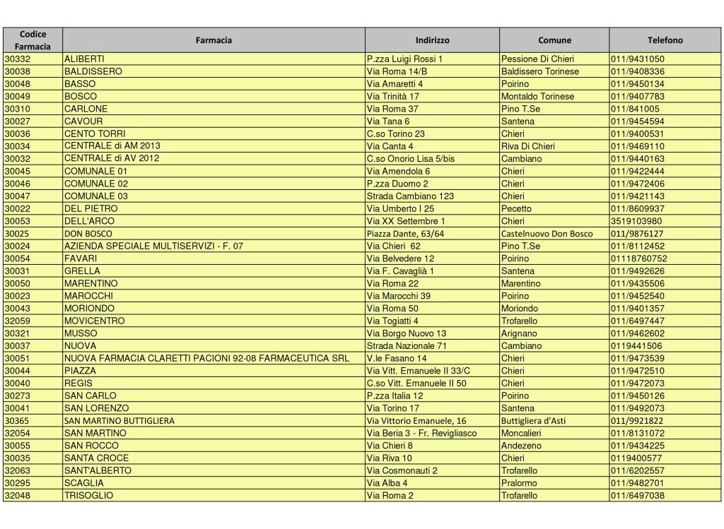 I TURNI DELLE FARMACIE DEL CHIERESE NEL 2025