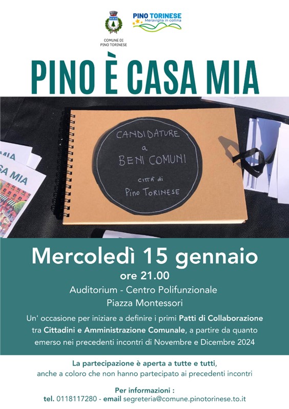 Pino Torinese. Mercoledì 15 gennaio “Pino è Casa Mia” incontro sui Beni Comuni