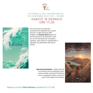 La lettura di un libro è anche speranza, desiderio di vita e di cammino insieme. E inoltre. Scoprire i libri, farsi affascinare dal messaggio, le tecniche espressive diverse, i contenuti della storia, è un’esperienza che può far aprire mondi e visioni inaspettate. Ecco alcuni messaggi che l’Associazione V.I.T.A. ODV vuole trasmettere presentando due libri: “Libero” di Daniela Gionco e “Parole del cuore” di Mariarosaria Rosellini. I libri saranno presentati sabato 18 gennaio alle 17,30 a Chieri nel Salone centrale della Cittadella del Volontariato di Chieri in Via Giovanni XXIII 8. “Libero” (edito nel 2024) nasce dall’esperienza della logopedista Daniela Gionco, originaria di Castelnuovo Don Bosco che ora vive e lavora in Val d’Aosta. È la storia di Christian, bimbo affetto da una malattia genetica rara, accompagnato con i genitori nella sua breve esistenza con grande professionalità ed umanità da medici e professionisti sanitari. È una storia di amore e di inclusione ma anche di resilienza e di valori condivisi. “Parole dal cuore” (edito nel 2020) è una raccolta di poesie ad opera di Mariarosaria Rosellini, medico di base e volontaria dell’Associazione V.I.T.A. Sono poesie ed immagini, riflessioni sul significato della vita, su emozioni e sentimenti che nascono dalla visione della Natura e dall’esigenza di trascendente. L’ingresso è libero a entrambi gli appuntamenti. Per informazioni potete contattare il n. 329 972 5792 oppure scrivere alla mail associazionevitachieri@gmail.com