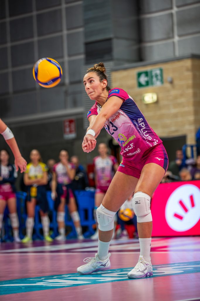 Sofia D’Odorico (Wash4Green Pinerolo): “Ci sono cose che dovremo riguardare, oggi abbiamo fatto fatica a contenere Obossa a muro e in generale anche sulla fast abbiamo faticato un po’. Ci sono state anche cose positive e sicuramente vado a casa con delle cose da imparare per la prossima gara”.