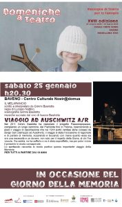 “Anche quest’anno – segnalano il sindaco Alessandro Monti e il vice sindaco Maria Rosa Gnocchi – l’Amministrazione Comunale di Baveno celebra il Giorno della Memoria, per non dimenticare e spiegare, anche ai più giovani, l’orrore della Shoah, dei campi di concentramento e dei crimini commessi dai nazifascisti durante la II° Guerra mondiale”. Tre gli appuntamenti che si svolgeranno in due giorni. 𝗦𝗮𝗯𝗮𝘁𝗼 𝟮𝟱 𝗴𝗲𝗻𝗻𝗮𝗶𝗼, presso il 𝗖𝗲𝗻𝘁𝗿𝗼 𝗰𝘂𝗹𝘁𝘂𝗿𝗮𝗹𝗲 𝗡𝗼𝘀𝘁𝗿@𝗱𝗼𝗺𝘂𝘀, 𝗼𝗿𝗲 𝟮𝟬:𝟯𝟬, 𝗩𝗶𝗮𝗴𝗴𝗶𝗼 𝗮𝗱 𝗔𝘂𝘀𝗰𝗵𝘄𝗶𝘁𝘇 𝗔/R, scritto e interpretato da Gimmi Basilotta, regia di Luciano Nattino, scenografie Gimmi Basilotta, musiche suonate dal vivo di Isacco Basilotta. Compagnia Il Melarancio. Per tutti a partire dai 10 anni. Lunedì 27 gennaio, presso il lungolago di Baveno dalle 09:00 “itinerario della memoria”, percorso guidato sul lungolago con visita al monumento dedicato alla Shoah e alle pietre d’inciampo, posate in memoria delle vittime della strage del 1943. Alle ore 10:00 presso il centro culturale nostra@Domus, proiezione del documentario “Even 1943: Olocausto sul lago Maggiore”. Eventi, questi del 27 gennaio, dedicati ai ragazzi della scuola secondaria dell’Istituto comprensivo A. Fogazzaro – C.Rebora. Organizza il Comune di Baveno in collaborazione con l’associazione Casa della Resistenza.