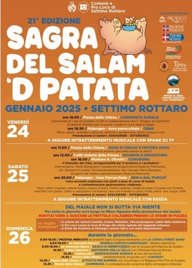 SETTIMO ROTTARO. Dal 24 al 26 gennaio ” SAGRA DEL SALAM ‘D PATATA”