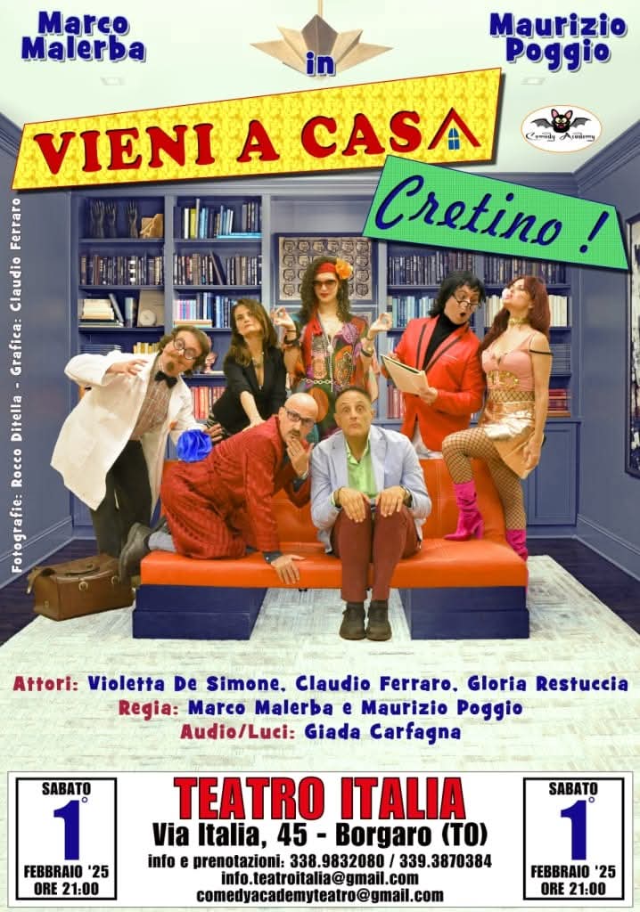 BORGARO. Sabato 1 febbraio “VIENI A CASA CRETINO” al Teatro Italia.