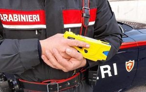 La Gazzella arriva rapidamente, trova la donna ancora barricata mentre l’aggressore è rientrato nella propria abitazione, pertinenza del centro ippico. I Carabinieri lo raggiungono, sta discutendo con una donna, è molto alterato a causa dell’alcool, viene richiesto l’intervento di un’autoambulanza per soccorrerlo e trasportarlo al Pronto Soccorso. Questo però scatena la furia del 54enne che, visti i sanitari, si scaglia contro di loro cercando di colpirli al volto. Solo grazie all’intervento di un Carabiniere non riesce nell’intento, ma la situazione degenera ulteriormente. L’ubriaco arretra, impugna un grosso coltello e punta la lama di oltre trenta centimetri conto i Carabinieri, quindi gli si scaglia contro per accoltellarli. I Carabinieri schivano i fendenti, arretrano, si fanno seguire in cortile. L’uomo li minaccia e agita pericolosamente il coltello verso di loro. Uno dei Carabinieri estrae il taser – un dispositivo in dotazione alle forze dell’ordine che usa l’elettricità per immobilizzare il soggetto colpito – e avverte l’uomo dell’imminente utilizzo nei suoi confronti, gli ordina di abbandonare l’arma e di essere collaborativo. Tutto inutile, il 54enne si scaglia contro il Carabiniere, che lascia partire i dardi. Raggiunto a una gamba, l’uomo cade a terra sull’uscio dell’abitazione ma fa in tempo a chiudere la porta a chiave e a barricarsi. I Carabinieri forzano la porta, lo raggiungono, lo disarmano e lo ammanettano.