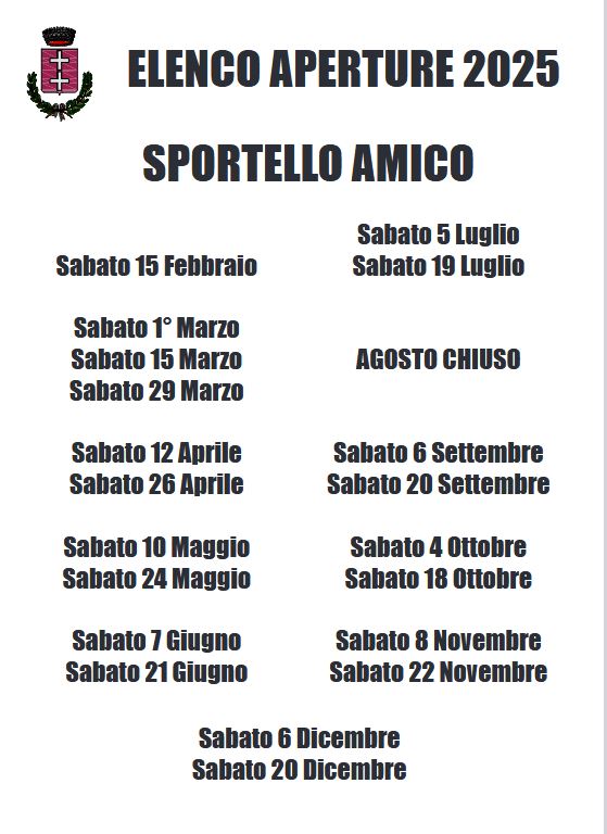 Lo Sportello sarà ubicato nel Palazzo Municipale, al piano terra, primo ufficio a destra.