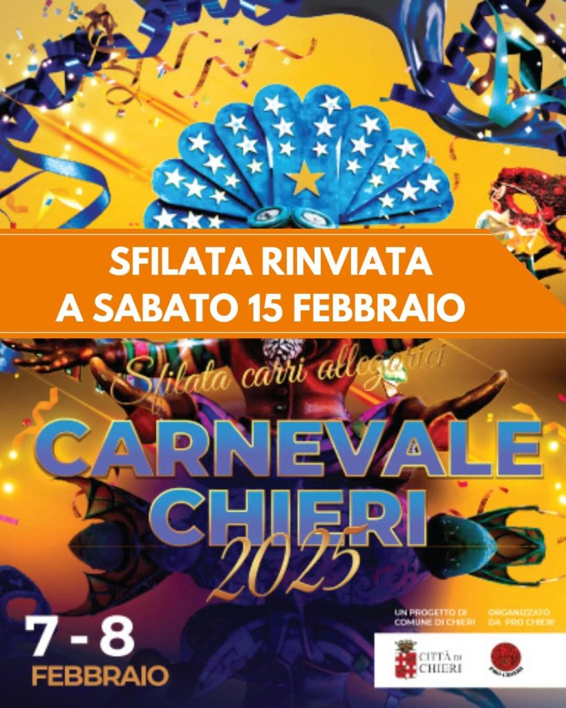 “Saltata” per il cattivo meteo previsto sabato 8, la sfilata dei carri del carnevale chierese sabato 15 non soffrirà dello spostamento di data temuto all’inizio dagli organizzatori.