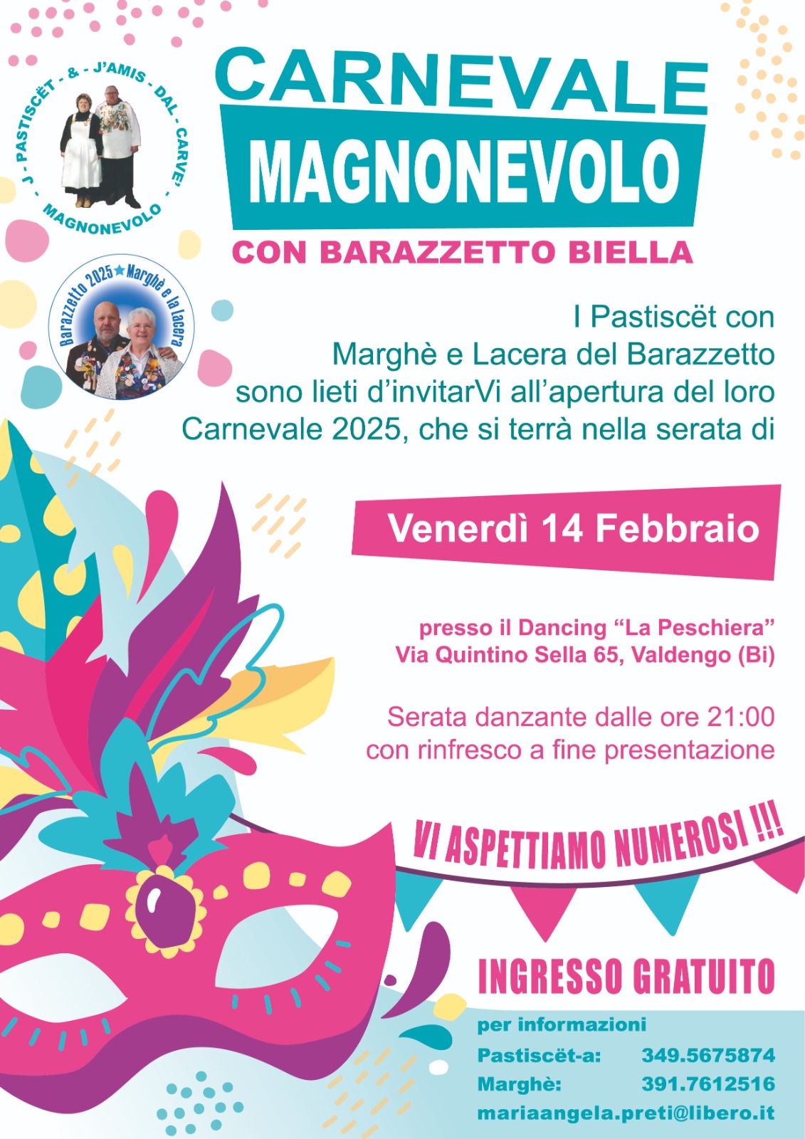 MAGNONEVOLO. Venerdì 14 febbraio Festa di carnevale