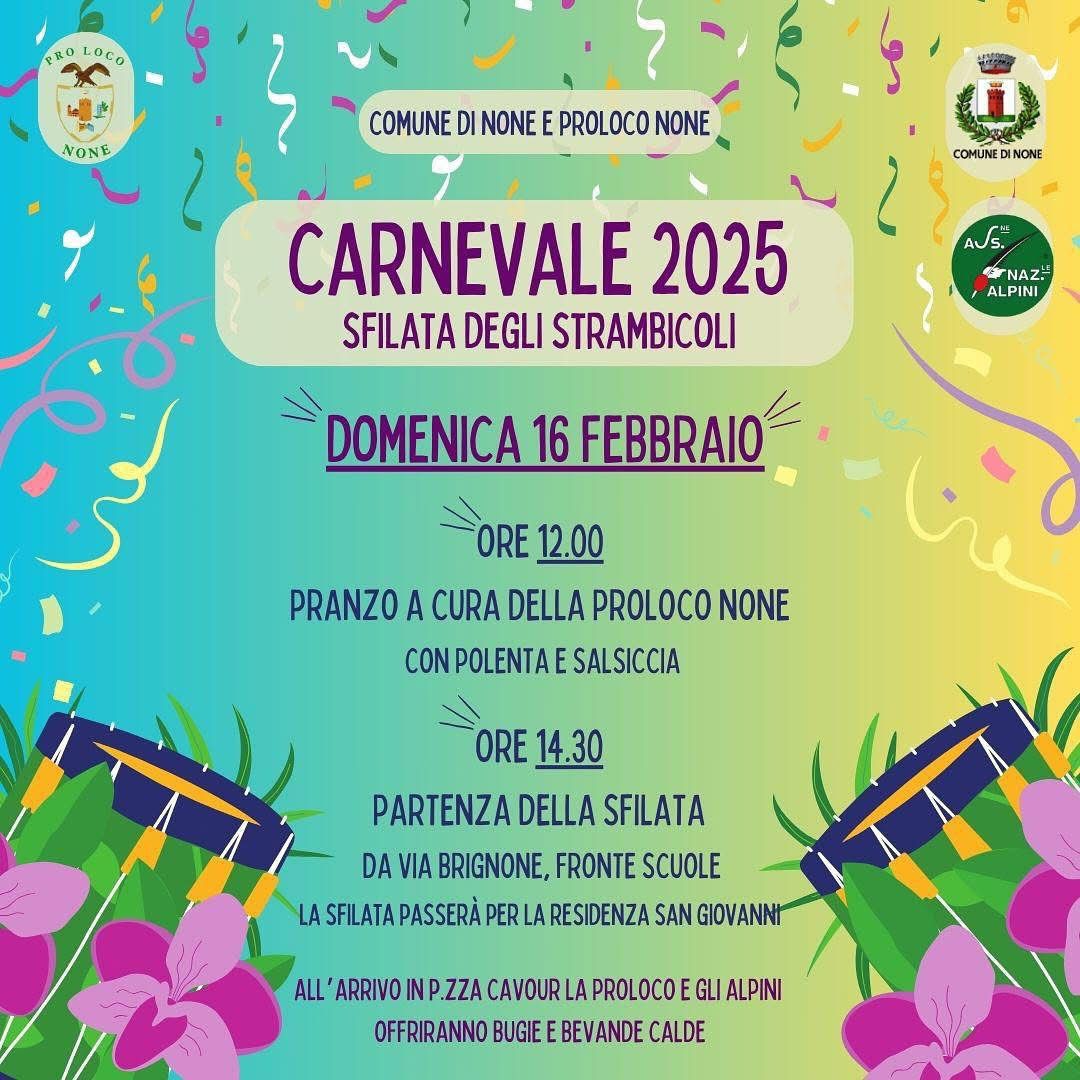 NONE . Domenica 16 febbraio “Carnevale con Sfilata degli STRAMBICOLI