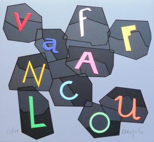 La mostra si sviluppa intorno al concetto di lettera come elemento visivo e simbolico mettendo in dialogo passato e presente, tradizione e sperimentazione artistica. Una selezione di opere eterogenee, offre al visitatore l’occasione di un breve viaggio ricco di spunti nel mondo della grafica d’arte, dell’illustrazione, dell’arte tipografica.L’esposizione raccoglie opere di artisti che hanno esplorato in tempi diversi, con differenti finalità e tecniche varie, le molteplici declinazioni dell’alfabeto e delle parole nell’arte, spaziando dall’ornamentazione tipografica alla pura ricerca formale, dall’uso della parola come parte integrante dell’opera all’impiego delle lettere come pretesto per la creazione di forme fantastiche, da un approccio ludico sperimentale alla creazione di nuovi alfabeti personali.Fra le opere esposte una selezione di capilettera elaborati da Eugène Grasset nel 1910 per l’enciclopedia Larousse, alcune litografie degli anni settanta di Sergio Dangelo fondatore con Enrico Baj del Movimento Arte Nucleare, un’irriverente serigrafia di Ugo Nespolo, diverse tavole tratte dalla rivista grafica Humor Graphic (n.22 del1982), le lettere disegnate a matita dalla raffinata illustratrice torinese Anna Curti, alcuni manifesti realizzati presso l’Archivio Tipografico di Torino utilizzando i caratteri mobili in legno e piombo.