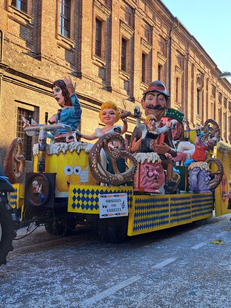 Amici del Pellice di Cavour con il carro “Chi è senza peccato scagli la prima pietra”