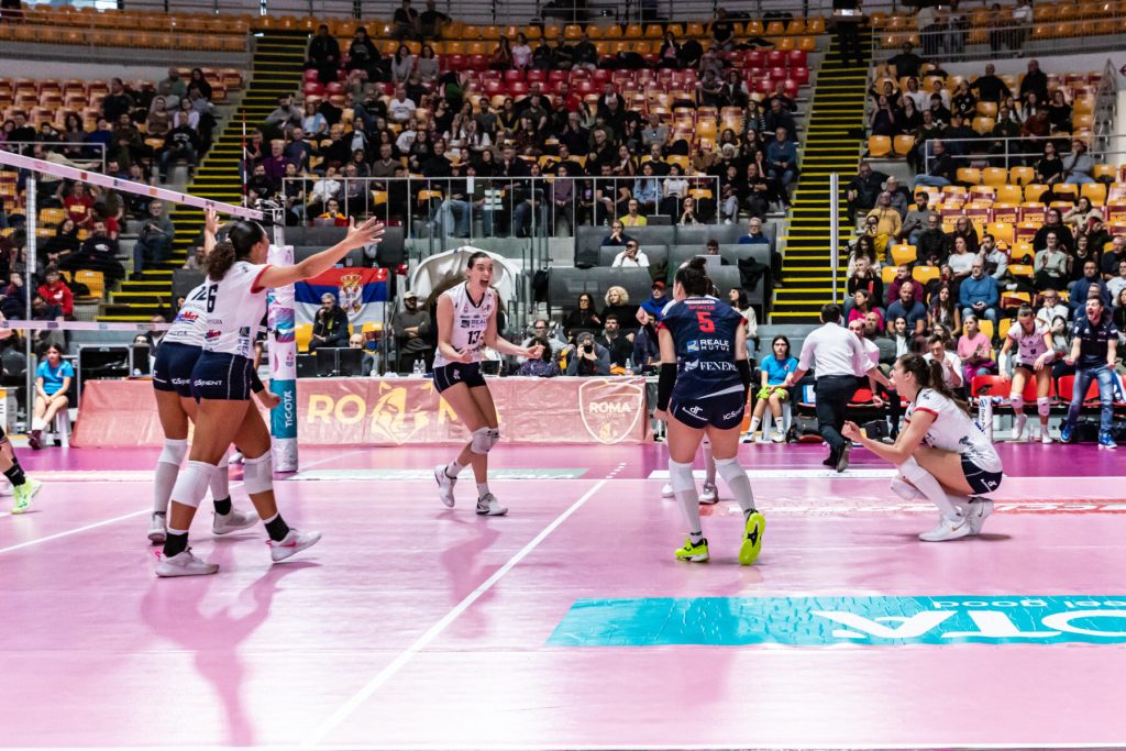 Il sestetto iniziale è composto da Van Aalen-Gicquel, Alberti-Zakchaiou, Omoruyi-Buijs e Spirito; da metà secondo set Guiducci e Skinner rilevano Van Aalen e Omoruyi. C’è un’assenza pesante anche nel roster di Roma che deve fare a meno della sua miglior realizzatrice Orvosova.