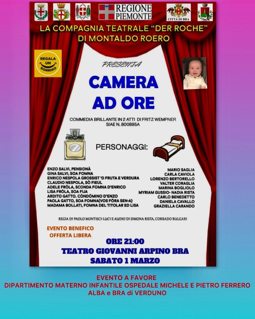 BRA. Sabato 1 marzo “CAMERA AD ORE” al Teatro Giovanni Arpino,