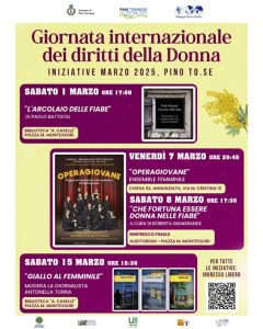 Nel mese di marzo, a Pino Torinese, avranno luogo numerose iniziative per la Giornata internazionale dei diritti della Donna, con l’obiettivo di offrire al pubblico momenti di approfondimento sulla figura femminile e occasioni per valorizzare il ruolo della donna nella società.