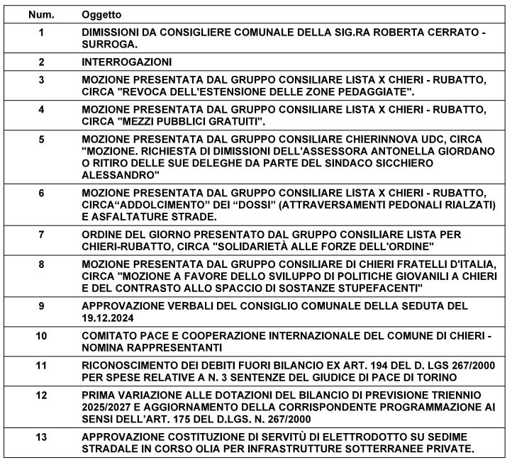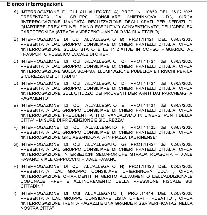 Si riunisce il consiglio comunale di Chieri lunedì 10 e martedì 11 marzo alle 19,45 per discutere un ampio ordine nel giorno nel quale non mancamo mozioni dell’opposizione su parcheggi e dossi.