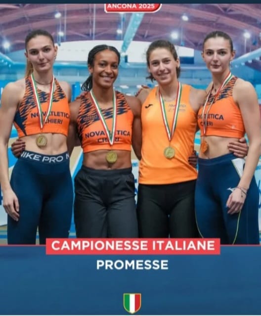 Venerdì 14 marzo, alle ore 11.30, presso la Sala Consiglio del Comune di CHIERI (via Palazzo di città, 10), il Sindaco Alessandro SICCHIERO e l’assessore allo Sport Flavio GAGLIARDI incontreranno e premieranno quattro giovani atlete della società sportiva Novatletica Chieri, che hanno conquistato tre titoli italiani under 23 in occasione dei recenti Campionati italiani Indoor Juniores e Promesse 2025, svoltisi ad Ancona: Gaya Bertello, titolo italiano under 23 sui 60 metri e titolo italiano under 23 della staffetta 4×1 giro;Clarissa Vianelli, titolo italiano under 23 sui 400 metri e titolo italiano under 23 della staffetta 4×1 giro; Martina Vianelli e Giorgia Palumbo, titolo italiano under 23 della staffetta 4×1 giro.