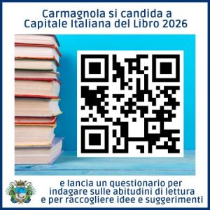 Nell’ambito di questa importante candidatura, il Comune di Carmagnola ha deciso di avviare un’indagine partecipata rivolta ai cittadini di tutte le età con particolare attenzione a bambini, ragazzi, scuole e associazioni. Attraverso un questionario online, i carmagnolesi sono invitati a raccontare le proprie abitudini di lettura, i generi preferiti, i luoghi dove leggono, ma anche a esprimere idee e suggerimenti per arricchire l’offerta culturale cittadina legata ai libri e alla lettura.