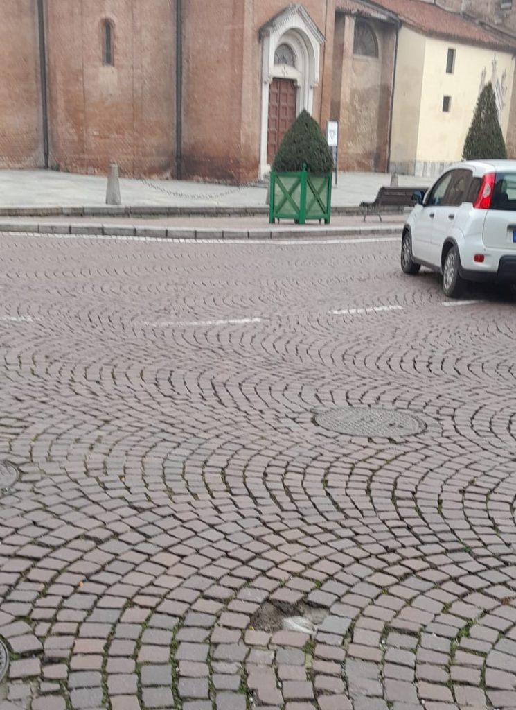 Chieri e la mobilità pedonale: quei blocchi di porfido in Piazza Duomo e la buca pericolosissima…