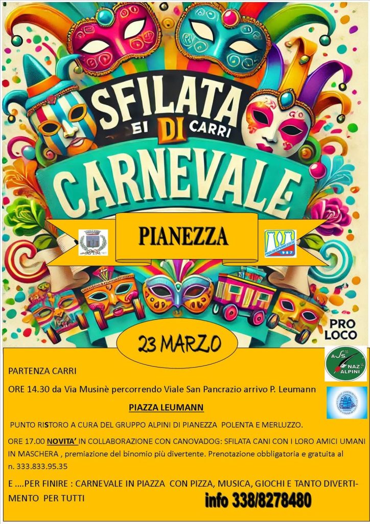 PIANEZZA. Domenica 23 marzo Sfilata dei Carri di Carnevale