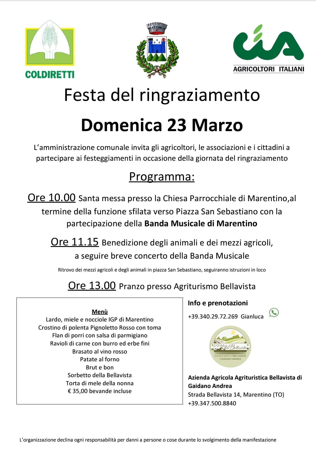 MARENTINO. Domenica 23 marzo ” Festa del Ringraziamento”.