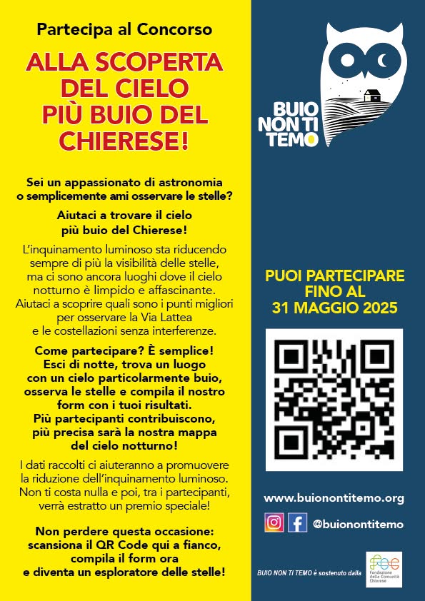 Chieri. Concorso “Alla scoperta del cielo più buio del Chierese” di Redazione · 19 Marzo 2025 Visto da: 164