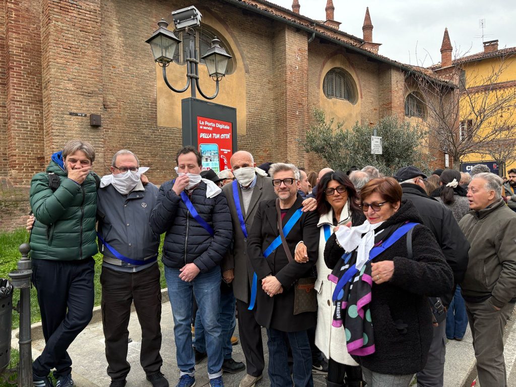 A Chieri, il tradizionale appuntamento con “La panchina del Sindaco”, previsto per venerdì pomeriggio sulla panchina di San Domenico, è stato l’occasione per alcuni cittadini del Comitato Centro Storico, di manifestare ancora all’amministrazione la propria contrarietà alle decisioni sui parcheggi a pagamento in centro. Il messaggio lanciato prima del blitz: “Abbiamo deciso di manifestare il nostro scetticismo partecipando in silenzio attorno alla sua panchina con un bavaglio bianco sulla bocca, ovviamente con la nostra fascia blu (parcheggio) sul petto. Il Comitato del Centro Storico di Chieri risponde PRESENTE all’invito del suo Sindaco, in silenzio però, ma con gli occhi ben aperti. Pronti a farci vedere, sì, ma non certo disposti a parlare ancora…senza essere certi di avere un interlocutore in grado di ascoltare.”