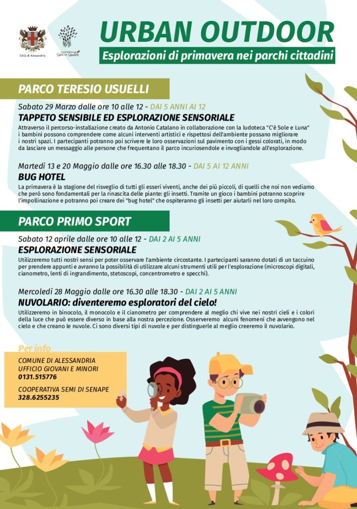 Il Comune di Alessandria, con l’arrivo della primavera, presenta URBAN OUTDOOR – Esplorazioni di Primavera nei Parchi Cittadini, iniziativa a cura dell’Assessorato alle Politiche Giovanili.