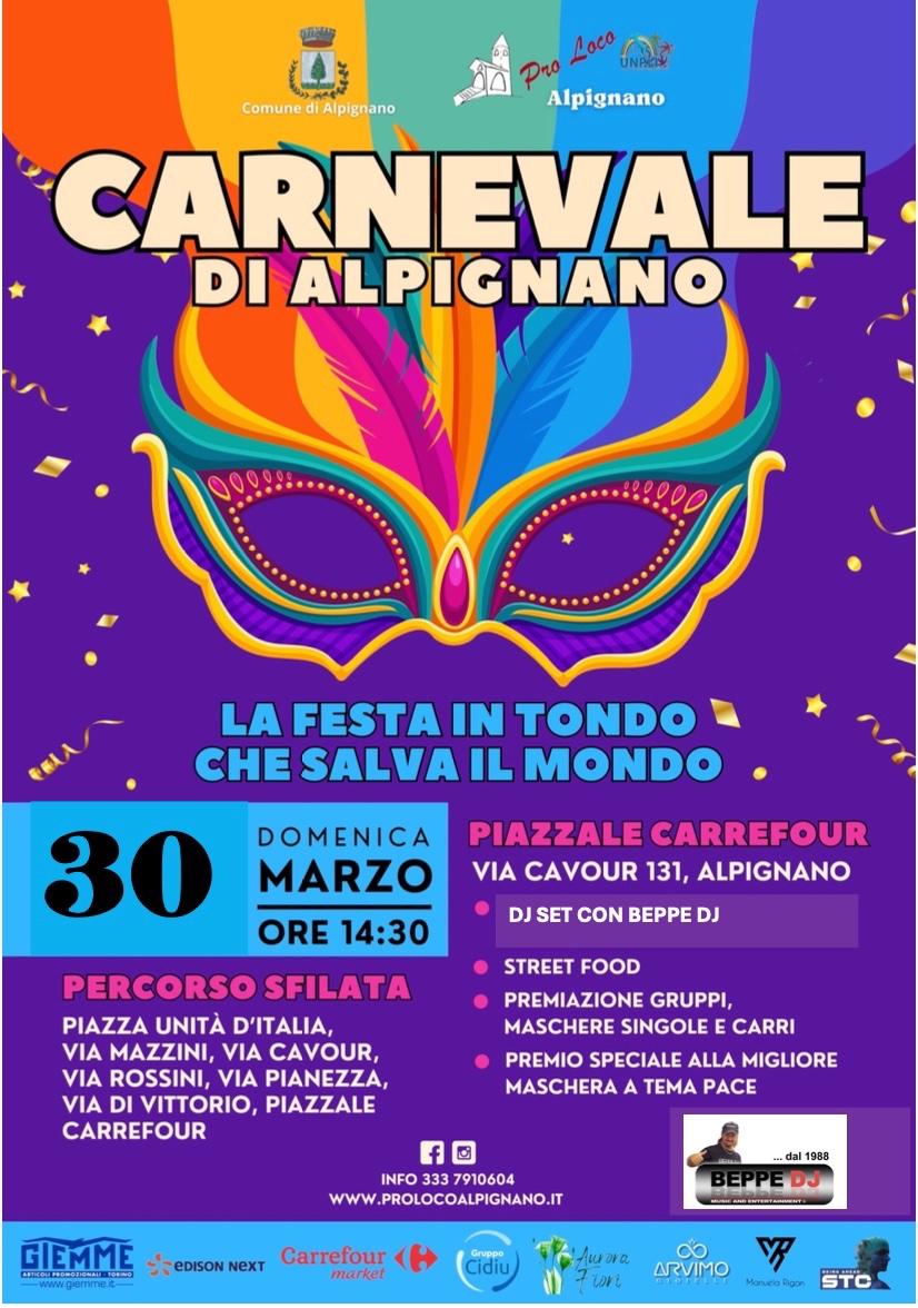 ALPIGNANO. Domenica 30 marzo “Carnevale di ALPIGNANO”