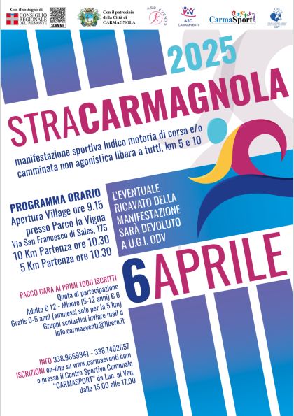 La primavera porta con sé una manifestazione molto attesa dagli amanti dello sport e della vita all’aria aperta: la StraCarmagnola, evento ludico-motorio che coniuga corsa e camminata non agonistica in un’occasione di condivisione, benessere e solidarietà.