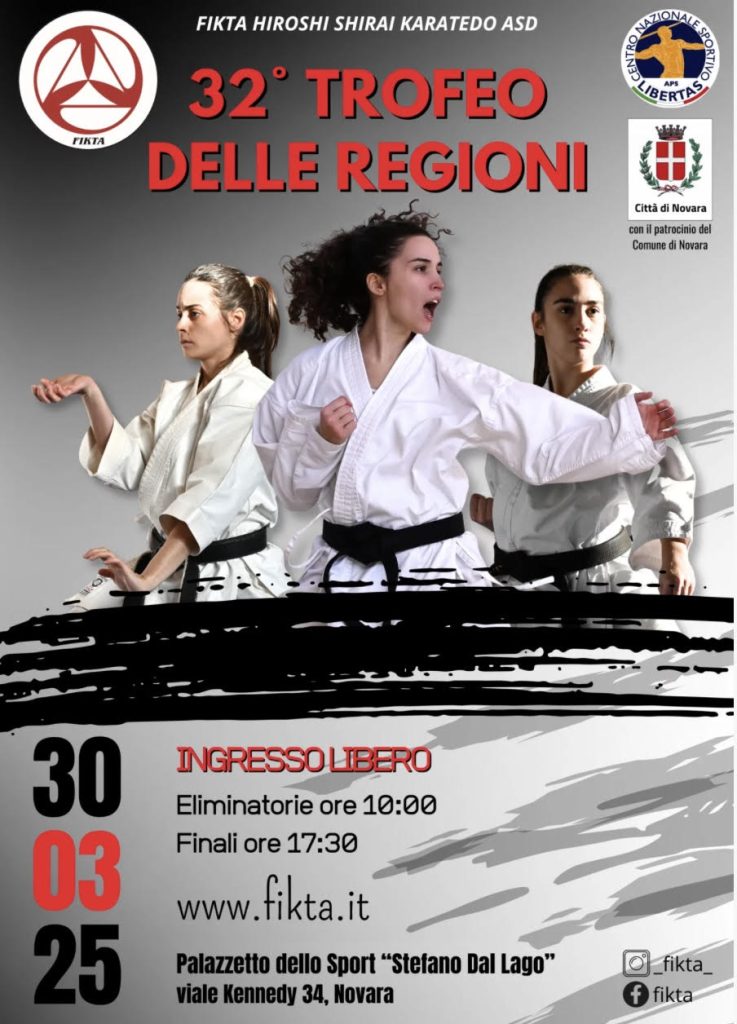 Si svolgerà domenica 30 Marzo 2025, presso il Palazzetto dello Sport “Stefano Dal Lago” di Novara, la Fase Nazionale del 32° Trofeo delle Regioni di karate.