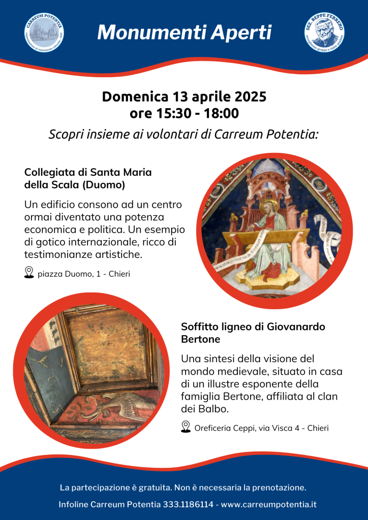Per i prossimi appuntamenti di maggio e per seguire il calendario dei #MonumentiAperti consultare il sito www.carreumpotentia.it