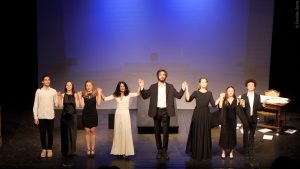 La chiusura della stagione serale è affidata a L’invenzione senza futuro, uno spettacolo in collaborazione con Fondazione Campania dei Festival e Teatro della Tosse di Genova. “Un’invenzione senza futuro!” Così Antoine Lumière definisce il cinema, un progetto a cui i suoi figli stanno lavorando. Lo spettacolo racconta il rapporto tra i due fratelli – Louis e Auguste – che stanno per rivoluzionare la visione del mondo, attraverso un viaggio che si trasforma e si snoda per mezzo di scene di film, incontri, suoni e visioni. Il racconto di una vita che si fa metafora delle evoluzioni del cinema, delle sue più importanti invenzioni: dal muto al sonoro, dal montaggio al colore. Un inno a chi osa, alla creatività…