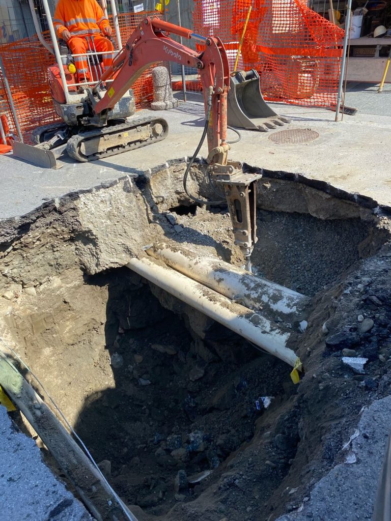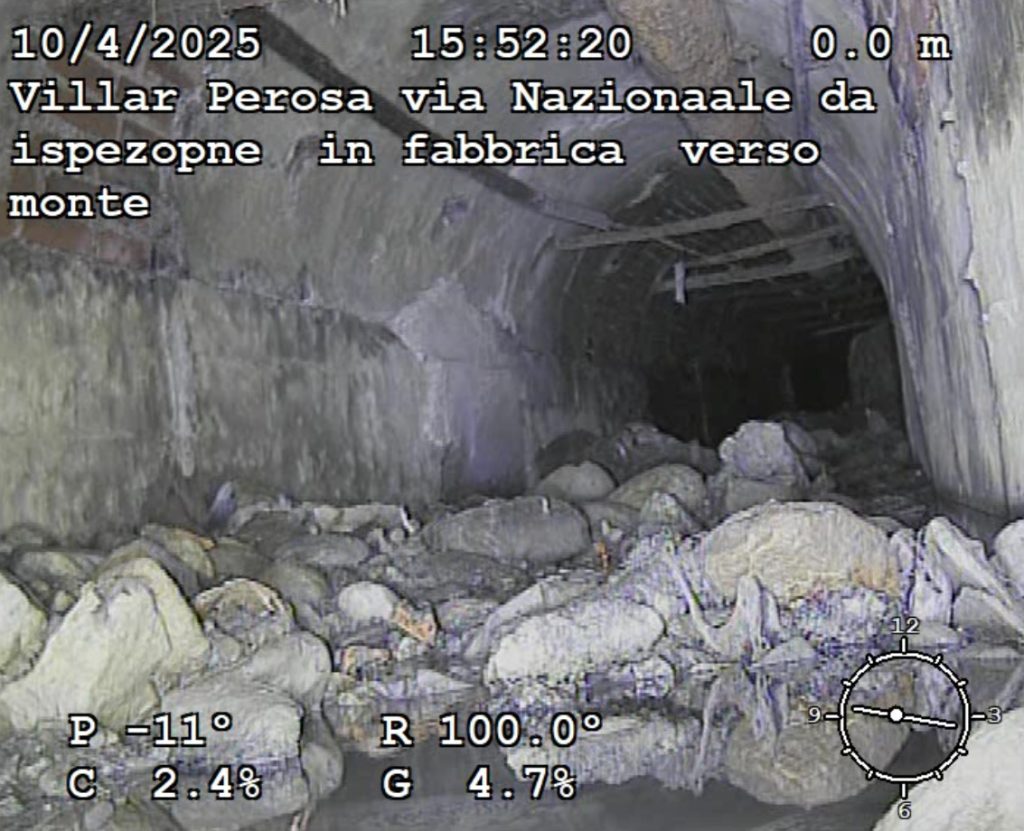 Nonostante la presenza di numerosi sottoservizi, si è raggiunta la quota del canale che sottopassa la Provinciale a circa 4 metri di profondità e si è constatato che il crollo era dovuto allo svuotamento del terreno dietro un pozzetto di raccordo tra la tubazione che raccoglie le acque della Roggia della Roul proveniente da monte e il canale che passa sotto la SP 23. In parallelo è stata eseguita una videoispezione dell’interno dei manufatti, che ha rassicurato circa la loro integrità, pur evidenziando la necessità di una pulizia, con la rimozione del materiale depositatosi nel corso dei decenni.