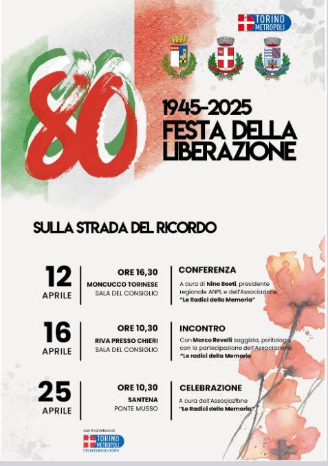 L’iniziativa, realizzata in collaborazione con l’Associazione “Le Radici la Memoria”, rappresenta la tappa conclusiva del progetto intercomunale “Sulla strada del ricordo”, che ha unito Santena, Moncucco Torinese e Riva presso Chieri in un percorso condiviso volto a valorizzare la memoria storica attraverso conferenze, incontri e momenti di riflessione civile.