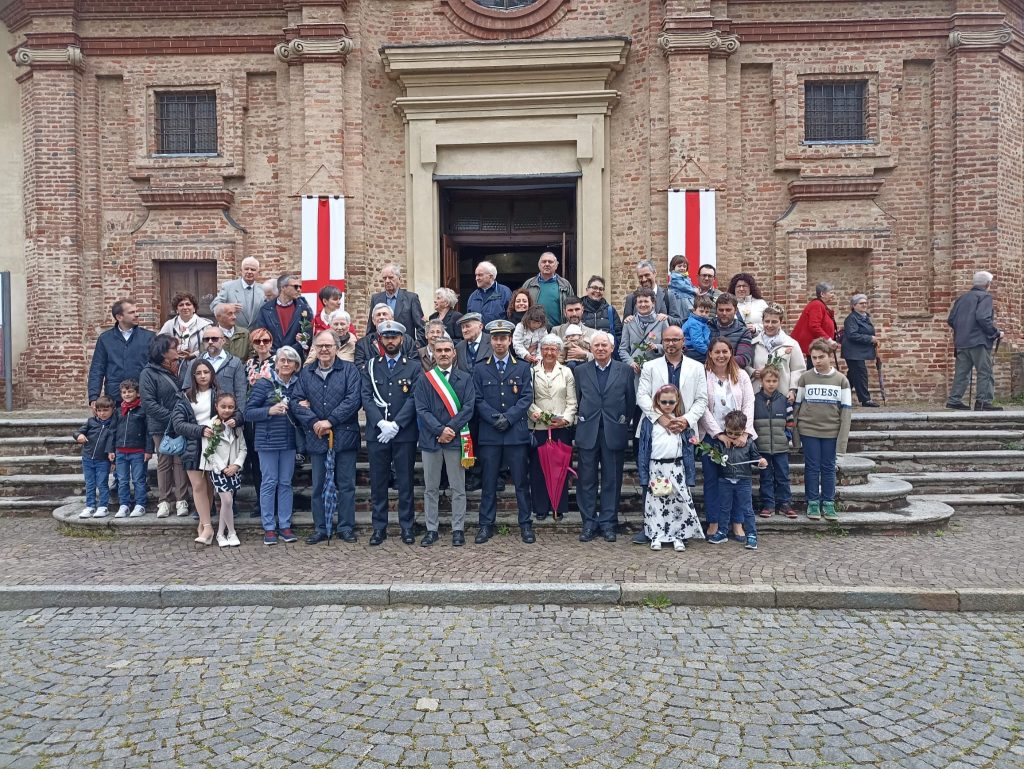 In occasione della festa di San Giorgio, in Parrocchia si sono festeggiati gli anniversari di matrimonio. Nella foto, il gruppo dei festeggiati con il sindaco di Chieri, Alessandro Sicchiero